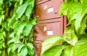 62823174 – mailboxes on the wall between the grape leaves.